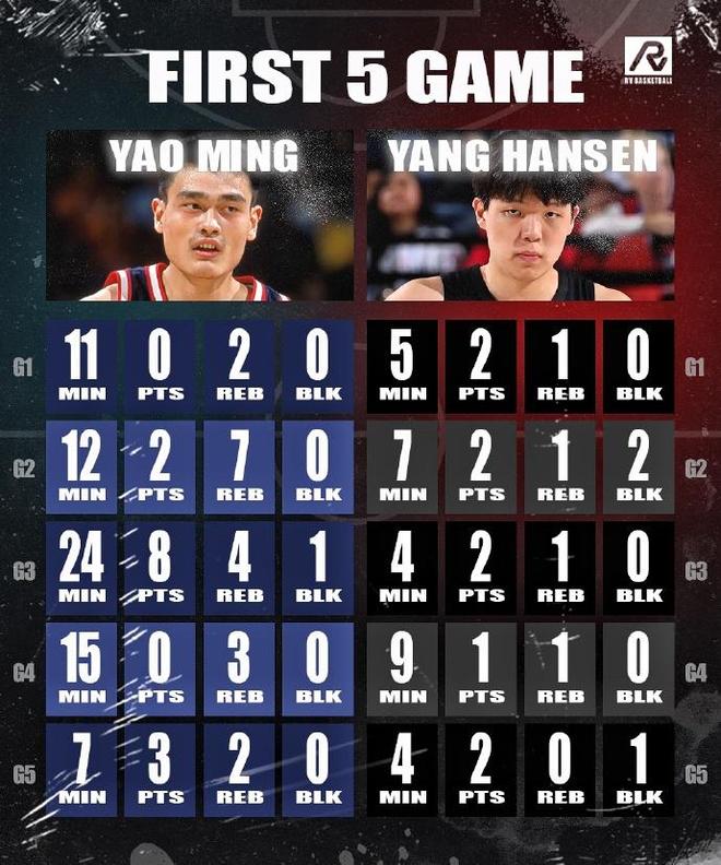 第1場小楊只拿到2分之后,很多人還把他和姚明進行了對比,那么楊瀚森對比姚明,在生涯前5場比賽里的數(shù)據(jù)究竟如何?現(xiàn)在也是有媒體帶來了一個重磅的揭秘,看一看楊瀚森是否能夠和姚明進行pk。