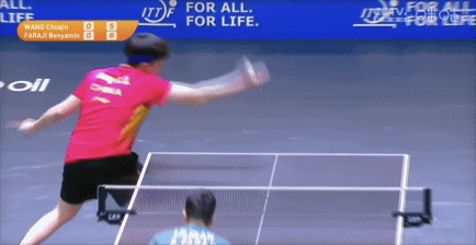 本雅明的正手手感好,無論什么位置都有對應的技術組合,比如正手反拉后配合銜接?;厍蛎黠@低、平,幾乎貼網(wǎng)(所以有好幾次擦網(wǎng)),由于以加轉弧圈球為主,其回球常見半出臺或近網(wǎng)區(qū)落點,王楚欽很難合力,因此在反拉本雅明的加轉弧圈環(huán)節(jié),失誤較多。