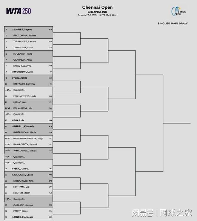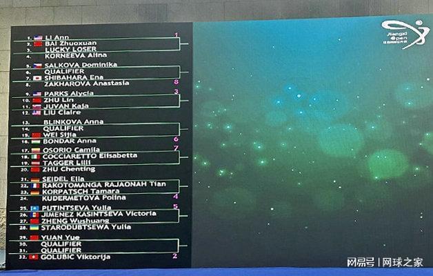 九江站:李吉妮、格魯比奇、帕克斯、庫德梅托娃位列前四號種子。中國有六將出戰(zhàn),其中白卓璇vs李吉妮、朱琳vs 帕克斯、韋思佳vs 邦達(dá)爾、朱宸汀vs 塔格爾、鄭嫵雙vs 斯塔羅杜布采娃、袁悅vs資格賽球員。