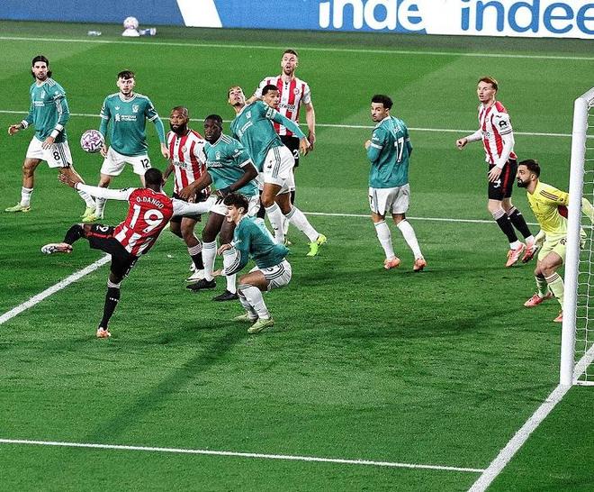 不甘心輸球的利物浦,在接下來的時間大舉壓上圍攻布倫特福德,第88分鐘索博斯洛伊右路下底傳中,薩拉赫在禁區(qū)內(nèi)停球打門一氣呵成,打破了俱樂部6場進球荒,將比分追到了2-3,看到了壓哨絕平的希望。