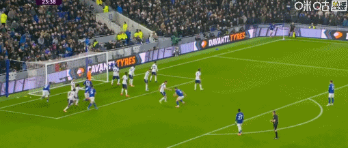 第45+6分鐘,波羅開出角球,范德芬頭球雙響,熱刺2-0埃弗頓